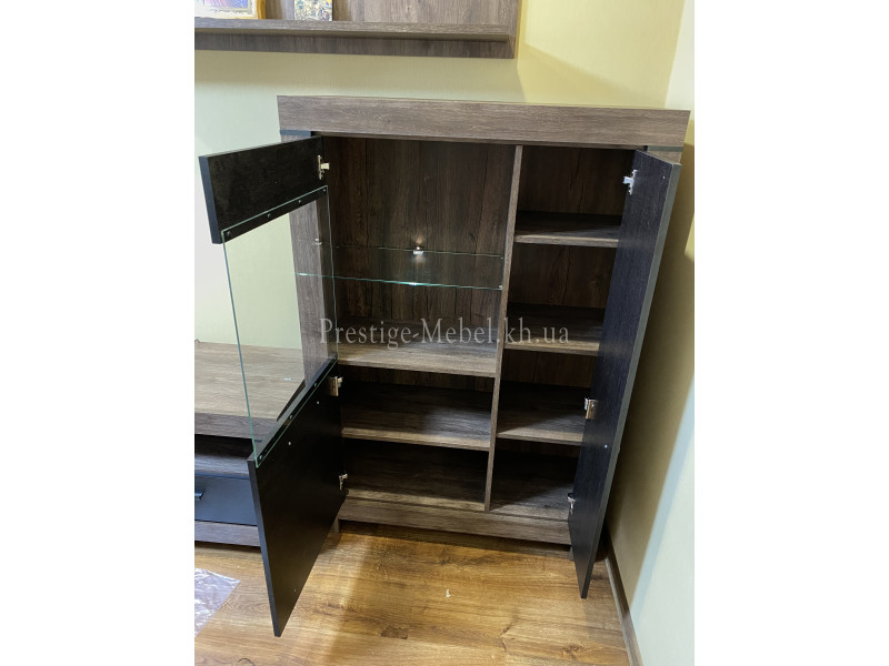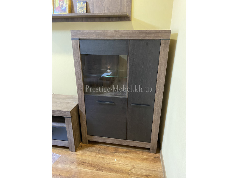 Мебель Белен Гербор – современная коллекция для гостиной в стиле минимализма. Изготавливается из ДСП в контрастном цветовом решении «дуб монастырский / дуб болотный коричневый». Привлекает внимание геометрически правильными формами и модными продолговатыми ручками. Функциональные витрины с подсветкой, настенная полка, вместительные комод и тумба под телевизор мебели Belen Gerbor позволят стильно обустроить гостиную любого размера.