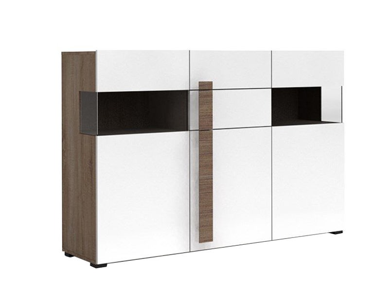 Комод KOM1D2W2S Доменика является современным качественным стильным комодом-новинкой для гостиной, кухни или прихожей. Комод произведен мебельной фабрикой Гербор. Этот комод изготавливается из современной ДСП в цвете "дуб сонома/ белый глянец" в популярном минималистическом стиле. Он имеет геометрически ровные прямоугольные формы конструкции, фирменную фурнитуру Hettich.