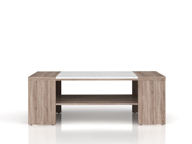 Стол журнальный LAW/120 Доменика является современным качественным столом для гостиной производства мебельной фабрики Гербор. Этот стол производится из современной ДСП в цвете "дуб сонома/ белый глянец" в популярном минималистическом стиле. Он имеет геометрически ровные прямоугольные формы конструкции, фирменную фурнитуру Hettich. Состоит стол журнальный Доменика из просторной столешницы и дополнительной полки-подставки для книг, журналов и др. Стол журнальный Доменика благодаря своей конструкции и цвету гармонично будет смотреться в интерьере помещения как с остальными модулями Доменика, так и с мебелью в похожем стиле и цвете.