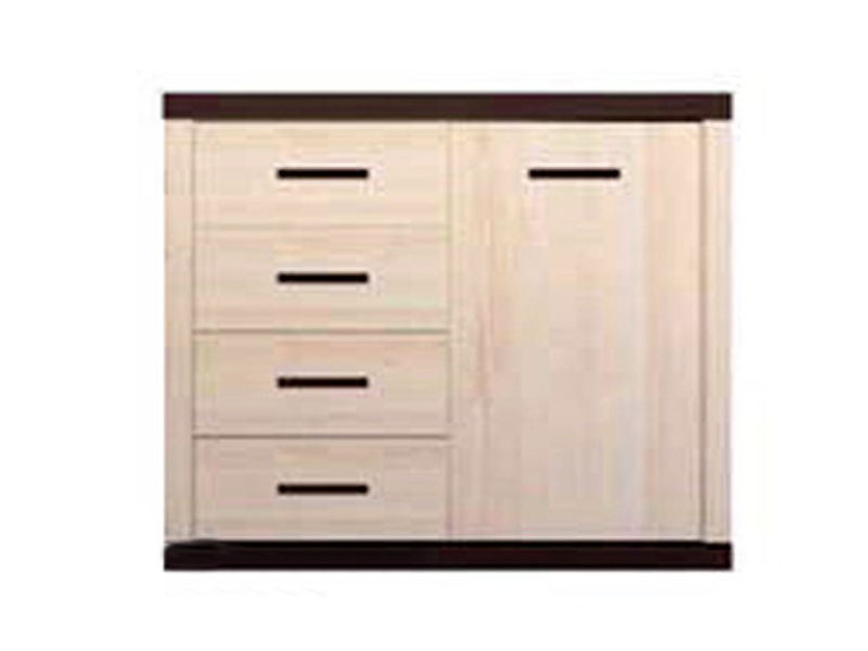 Комод 1d4s Кармен - стильный и современный элемент модульной системы производства фирмы Гербор, который украсит Ваше помещение, добавит ему уюта и улучшит атмосферу своим цветом. Он разделен на 2 функциональные зоны: 4 выдвижных ящика на роликах для хранения вещей и отделение с 4 полочками. Для усиления контрастности используются темные ручки на светлом фоне фасада комода. Комод подойдет наилучшим образом для установке в спальне. Он сочетается с остальными элементами этой модульной системы и с другими, похожими по цвету. Комод произведен на современном оборудовании с учетом всех требований к производству мебели и санитарным нормам Украины. Если Вы желаете приобрести качественную мебель, которая будет служить Вам долгие годы, Вам следует обратить свое внимание на этот комод.