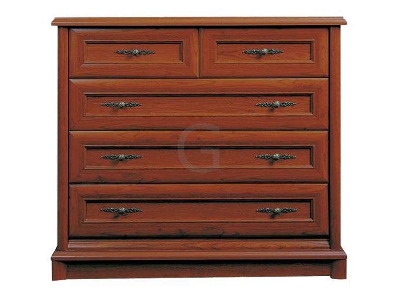 Комод 5s/10 Соната - вместительный и красивый комод производства фабрики Гербор, который благодаря своей конструкции может нек только использованться как хранилище для вещей, но и изысканно украсить собой помещение. Он изготовлен в классическом стиле из современных качественных материалов, имеет 4 вместительных ящика и 2 верхних ящика поменьше. Ящики украшены красивыми резными ручками, которые создают впечатление морской тематики в дизайне комода.