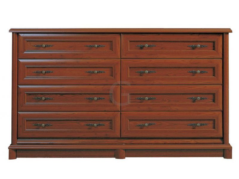 Комод 8s Соната - вместительный и красивый комод производства фабрики Гербор, который благодаря своей конструкции может нек только использованться как хранилище для вещей, но и изысканно украсить собой помещение. Он изготовлен в классическом стиле из современных качественных материалов, имеет 8 ящиков для вещей. Ящики украшены красивыми резными ручками, которые создают впечатление морской тематики в дизайне комода.