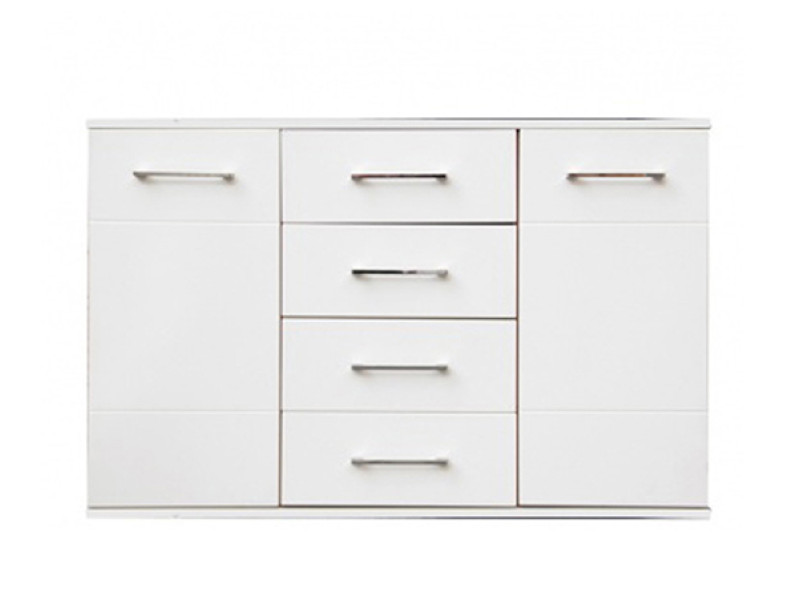 Изготавливается в цвете: корпус – белый, фасад – белый глянец. Характеризуется минималистическим дизайном, белоснежными глянцевыми поверхностями, оригинальной рифленой задней стенкой витрин и удобными продолговатыми металлическими ручками.