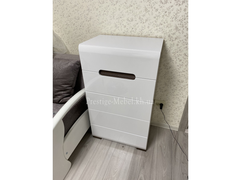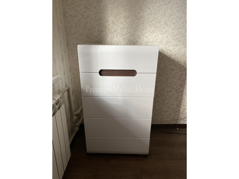 Комод KOM5S/10/6 Ацтека - стильный стандартный комод на 5 ящиков от украинского производителя. Он изготовлен из современной ДСП с фасадом МДФ в цвете "белый, белый глянец". Оснащается роликовыми направляющими ящиков. Этот комод подойдет для установки в гостиной или спальне. В сочетании с витринами, тумбами и шкафами он создаст уютный изысканный интерьер. Отлично будет смотреться в светлом помещении. Соотносится в помещении с элементами других систем в белом цвете. Заказать и купить комод КОМ5S/10/6 Ацтека можно в нашем магазине Престиж мебель.