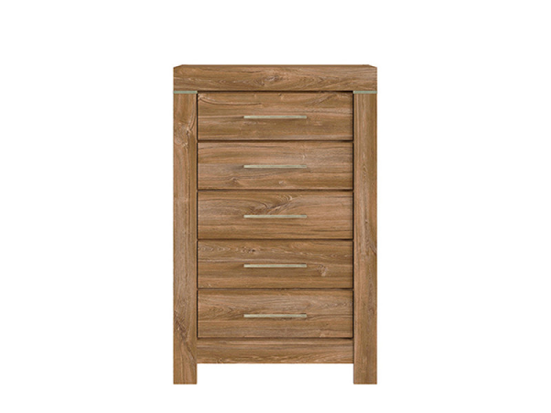 Комод KOM5S/10/7 German BRW содержит пять выдвижных ящиков.