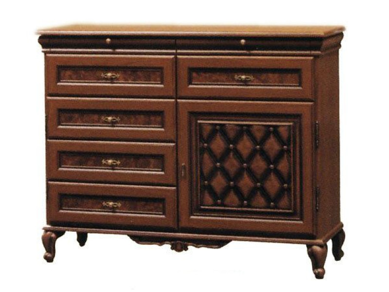 Комод 1Д Ливорно - один из модульных элементов системы Ливорно от производителя Світ Меблів. Этот комод производится в 2 цветах для помещений как с темным фоном, так и со светлым: "прованс светлый/ прованс темный". Рассчитан данный предмет мебели на установку в гостиной. Он имеет 5 полноразмерных ящиков, 2 маленьких выдвижных секции и шкафчик. Комод 1Д Ливорно хорошо будет сочетаться с любым из элементов в обстановке гостиной, создавая гармонию и уют, которые необходимы для полноценного отдыха.