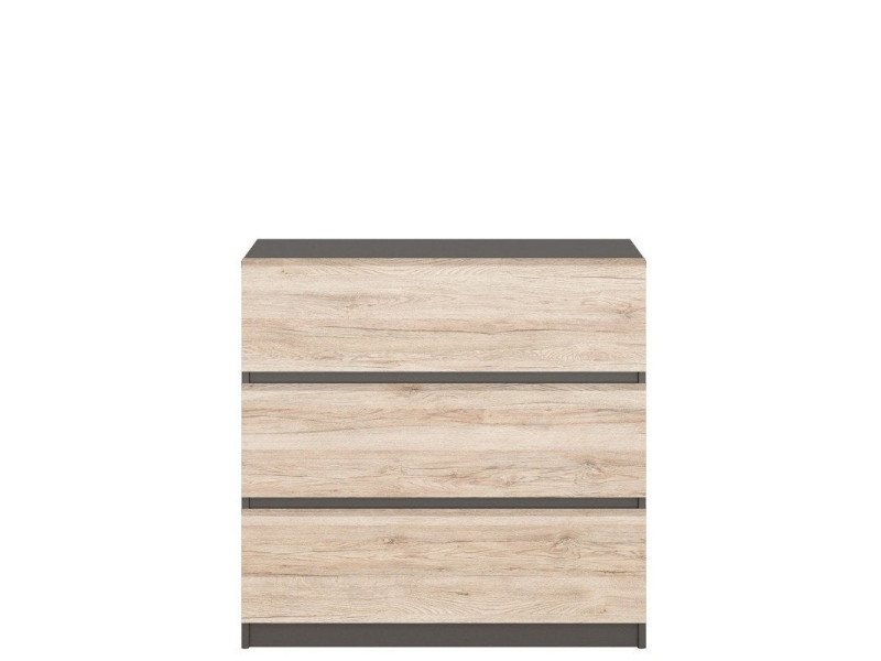 Комод KOM3S/90 Моден Гербор с двумя выдвижными ящиками – элемент модульной системы Moden от фабрики Gerbor-холдинг. Изготовляется этот комод в цвете "серый вольфрам / дуб сан-ремо светлый" с ярко выраженной текстурой. Характеризуется простыми геометрическими формами, выступающими вперед фасадами со скошенными краями и отсутствием традиционных ручек. Комод рассчитан на установку в гостиной или офисе. Он состоит из 3 ящиков. Благодаря своей контрастной расцветке комод может сочетаться в обстановке не только с элементами системы Моден, но и с другими. Вместе с другими элементами комод Моден создаст в обстановке комфорт и уют. Если Вы желаете заказать и купить комод Моден - звоните в интернет-магазин Престиж мебель. Материал: Каркас ДСП, Фасад ДСП.