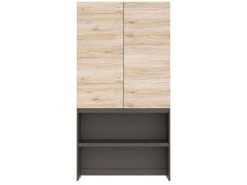 Надставка NAD2D/90 Моден - один из функциональных элементов модульной системы Моден производства Гербор. Этот элемент компонируется вместе с комодом и вместе они составляют открытый пенал. Изготовляется в цвете "серый вольфрам / дуб сан-ремо светлый" с ярко выраженной текстурой. Характеризуется простыми геометрическими формами, выступающими вперед фасадами со скошенными краями и отсутствием традиционных ручек. Надставка рассчитана на установку в гостиной или офисе. Она состоит из 2 открытых полок и 3 полок за дверью. Благодаря своей контрастной расцветке надставка может сочетаться в обстановке не только с элементами системы Моден, но и с другими. Вместе с другими элементами надставка Моден создаст в обстановке комфорт и уют. Если Вы желаете заказать и купить надставку Моден - звоните в интернет-магазин Престиж мебель. Материал: Каркас ДСП, Фасад ДСП.