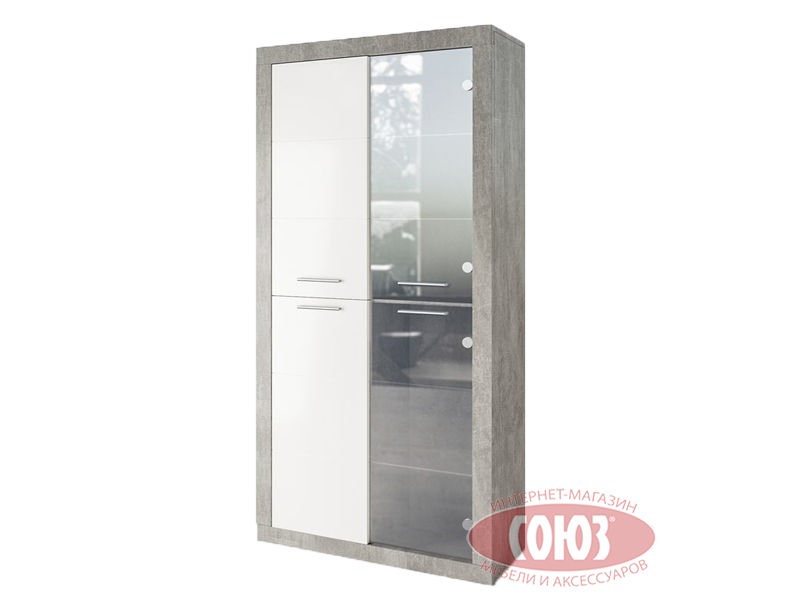 Оригинальный и стильный Омега шкаф 2Д Ск - один из составляющих от Модульной системы Омега фабрики Свит Меблив. Купить Омега шкаф 2Д Ск предлагается в красивом цвете двух контрастных оттенков: Бетон/Белый Глянец. Внутри установлены стекляные полки, подсветка нежного небесного цвета выгодно подчеркивает глянец фасадов.