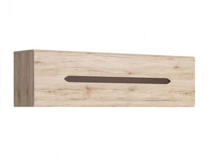 Изготавливается из ДСП с элементами МДФ в цвете «дуб san remo светлый». Привлекает внимание оригинальными углубленными ручками с эффектно контрастирующими вставками в цвете «венге коричневый». Простые геометрические формы смягчены закругленными фасадами. Витрины с тонированным стеклом дополнительно могут комплектоваться подсветкой.