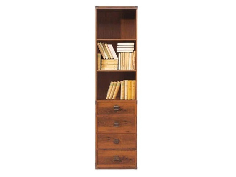 Стеллаж JREG 4SO 50 Индиана от фирмы БРВ - узкий стеллаж известного украинского производителя, который создаст комфорт и уют в помещении благодаря своему дизайну. Как и все остальные элементы этой модульной системы, он смотрится чрезвычайно элегантно как сам, так и в сочетании с другими элементами модульной системы Индиана. Стеллаж имеет конструкцию 3х4: 3 открытых отделения для хранения посуды и 4 закрытых ящика, которые также подойдут для посуды или вещей.