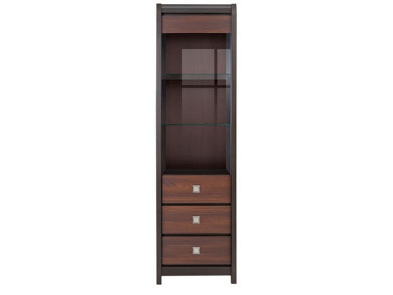 Витрина REG 1W2SL Лорен производства мебельной фабрики БРВ - современная и недорогая вертикальная витрина, которая является стильным элементом обстановки в стиле "модерн" в гостиной, прихожей, офисе. Витрина состоит из 2 секций: витрина с 3 полками и 3 ящика внизу для посуды или вещей. Она изготовлена в общем цвете всех элементов модульной системы Лорен - акация бронз мали/венге. Ящики оснащены удобными квадратными ручками. Это мебель для тех, кто любит качество и комфорт вместе. Недорогая витрина Лорен хорошо сочетается с модульными элементами системы Лорен и другими, похожими по цвету. Все вместе они создадут комфорт и уют в Вашей комнате и гармоничную обстановку в доме. Характеризуется геометрическими строгими формами, оригинальным цветовым решением с видимой текстурой древесины. Приобретая мебель системы Лорен - вы приобретаете качество, уют и заботу о Вас.