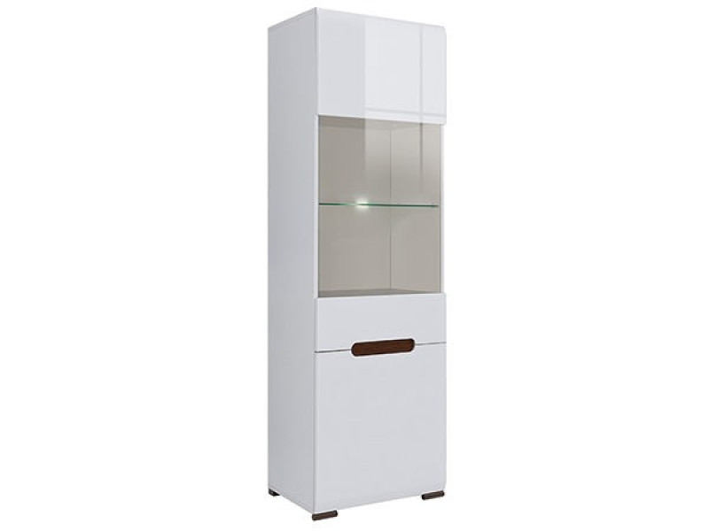 Витрина REG1W1D/21/6 Ацтека - современная витрина для посуды от украинского производителя - фабрики БРВ. Она изготовлена из современной ДСП с фасадом МДФ в цвете "белый, белый глянец". Витрина состоит из шкафчика и витрины с полками, она подойдет для установки в гостиной или кухне. Оснащается подсветкой содержимого. В сочетании с тумбами и комодами изделие создаст уютный изысканный интерьер. Отлично будет смотреться в светлом помещении. Соотносится в помещении с элементами других систем в белом цвете. Заказать и купить витрину REG1W1D/21/6 Ацтека можно в нашем магазине Престиж мебель.