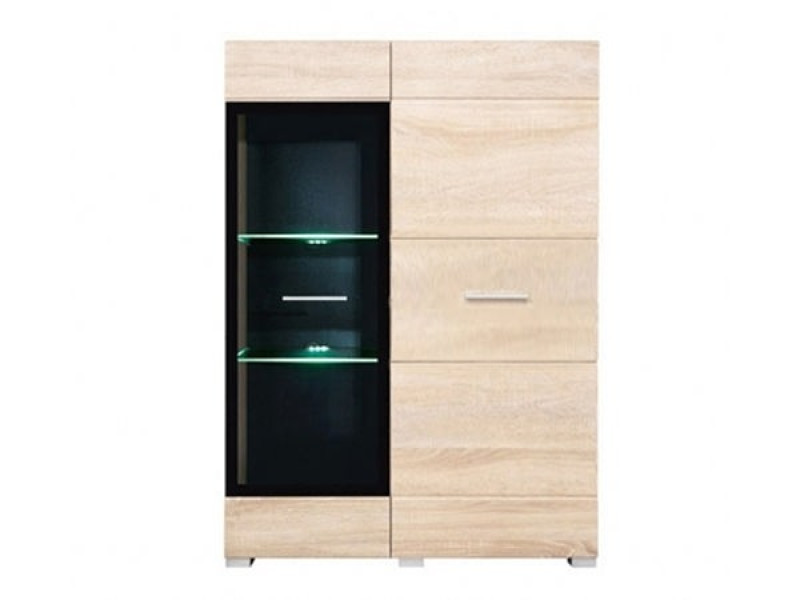 Витрина REG 1D1W L/P Вушер - современная стильная витрина украинского производителя, которая ничем не уступает зарубежным аналогам. Она изготовлена в светлом цвете "дуб сонома", подойдет для светлого интерьера помещения. Разделена витрина на 2 функциональных отделения: стеклянная витрина на 3 полочки с подсветкой (для хранения посуды, фоторамок и др) и закрытое: с наличием ящиков и мини-шкафчиков для хранения вещей. Эта витрина будет идеально сочетаться в интерьере с пеналом и другими элементами с подсветкой. Вместе они создадут гармоничный интерьер в Вашем помещении. Задняя стенка стеклянного отделения выполнена в контрастном цвете "черный глянец", который придает шарма и элегантности мебели Вушер.