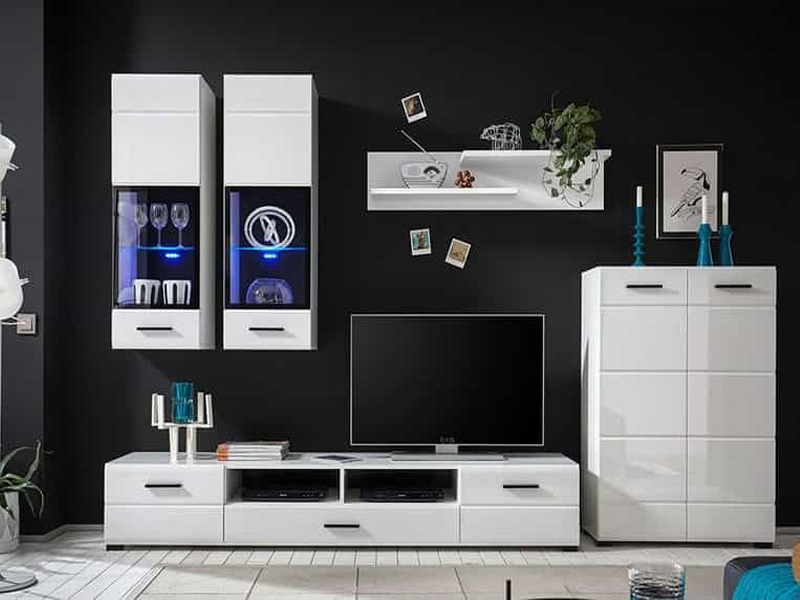 Стенка Аляска - современная стенка производства мебельной фабрики БРВ. Эта стенка изготовлена в цвете "белый, белый глянец" в минималистском стиле, она подойдет для установки в просторное помещение в светлых тонах. Витрины стенки Аляска комплектуются красивой подсветкой. Корпус изготавливается из ДСП, фасад – МДФ.