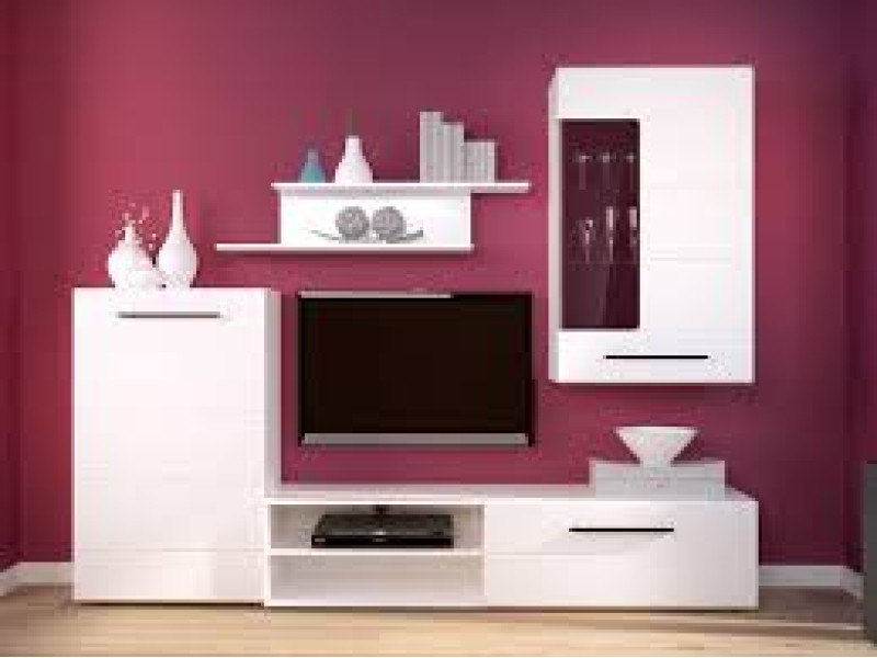 Гостиная Лена состоит из вместительной ТВ-тумбы, шкафчика для вещей с несколькими ящиками, полочек для книг и не менее вместительной витрины.
