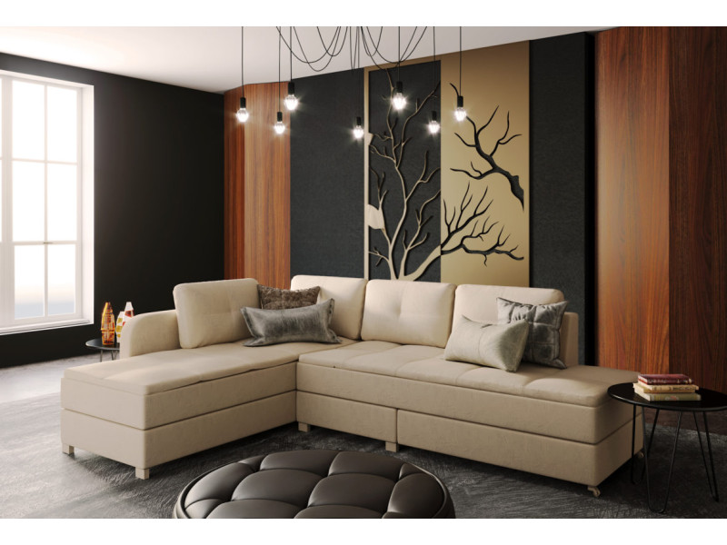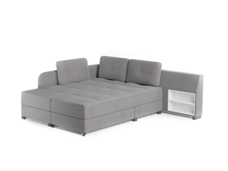 Максимум практичности и функциональности. Удобная угловая конструкция дивана позволяет эффективно использовать пространство комнаты. При разложении образуется просторная кровать, а также встроенные полочки.