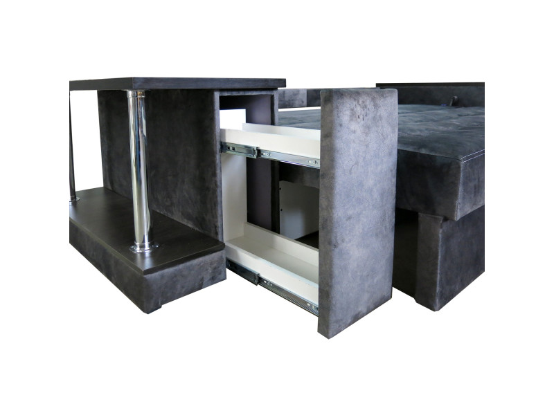 Диван Хилтон – модель дивана VIP класса, сочетает уверенные формы с присущим минимализмом. Современность модели заключается не только в дизайне, но и в необычной функциональностьи. Широкий модуль подлокотника одновременно служит журнальным столиком и баром. Диван Хилтон имеет большой короб для белья под сидением. Второй подлокотник также предусматривает в своей конструкции дополнительную нишу.