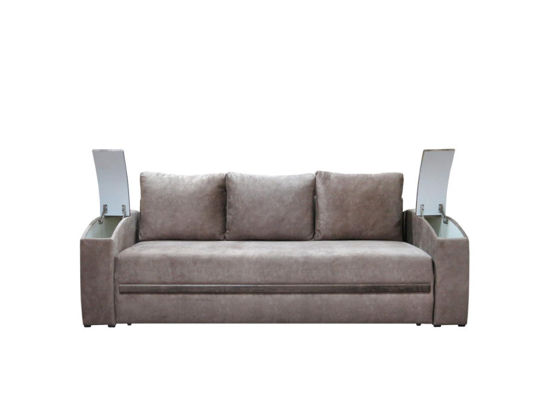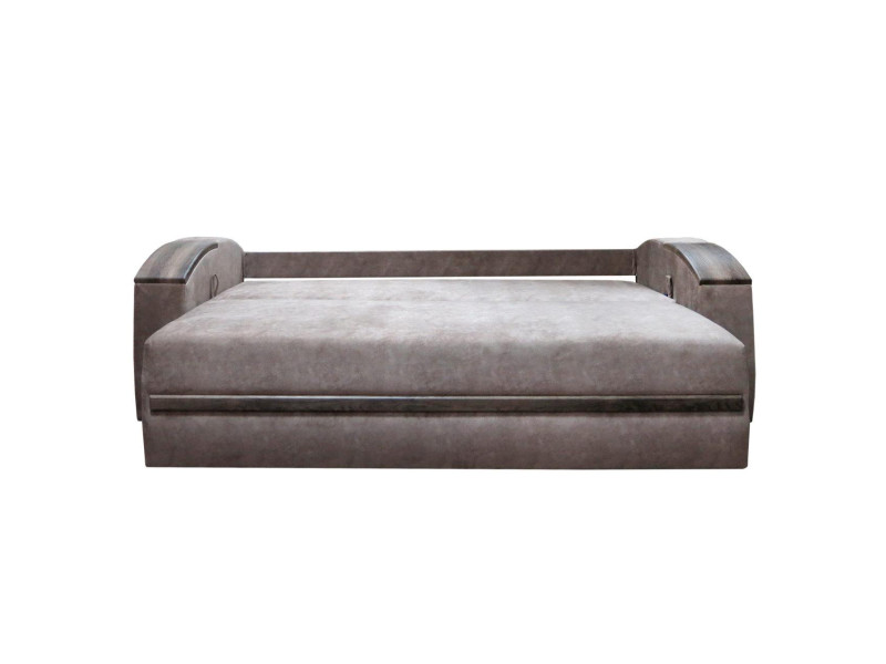 Диван Инфинити имеет большой короб для белья под сидением. Декоративные подлокотники с изогнутыми накладками МДФ также вмещают в себе дополнительные ниши для белья.
