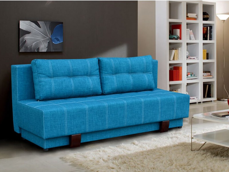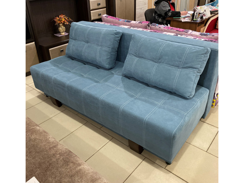 - Данный диван имеет очень стильный, оригинальный дизайн. Декоративные стежки на сидениях и подушках выделяют его среди остальных моделей. А отсутствие подлокотников помогает увеличить количество посадочных мест, сохранив при этом компактность изделия.