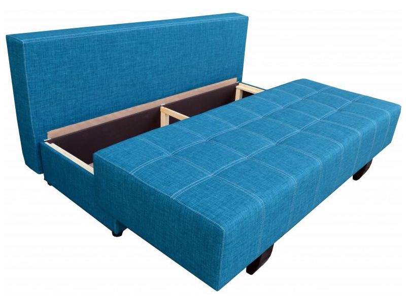 - Дополнительно диван оснащен просторным коробом для белья, куда можно спрятать на ночь декоративные подушки, а утром сложить постель.