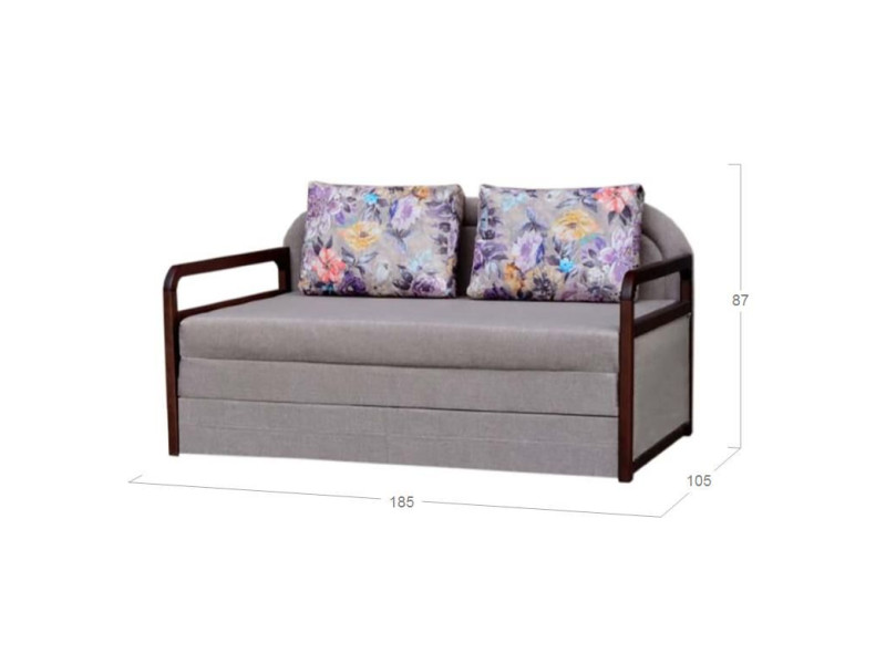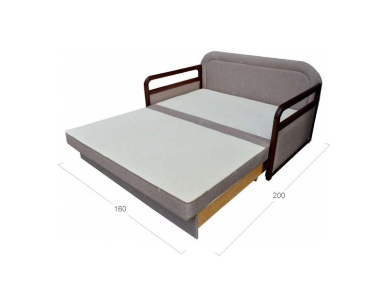 - Габариты этого дивана достаточно небольшие. Его ширина составляет 167 см, а глубина – 100 см. Но при этом он раскладывается и за несколько секунд превращается в просторное спальное место для двоих человек. Его параметры составляют 200х160 см. Этому способствует удобный в применении выкатной механизм трансформации.