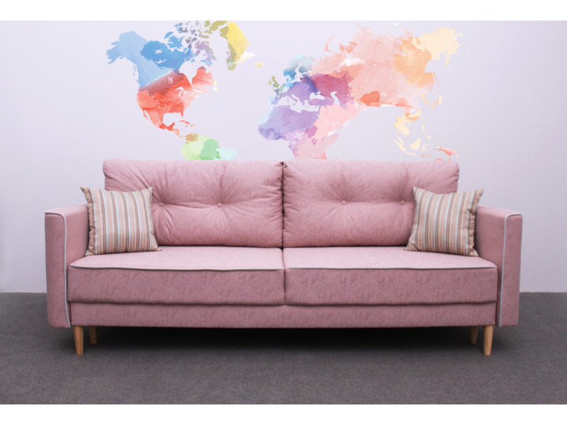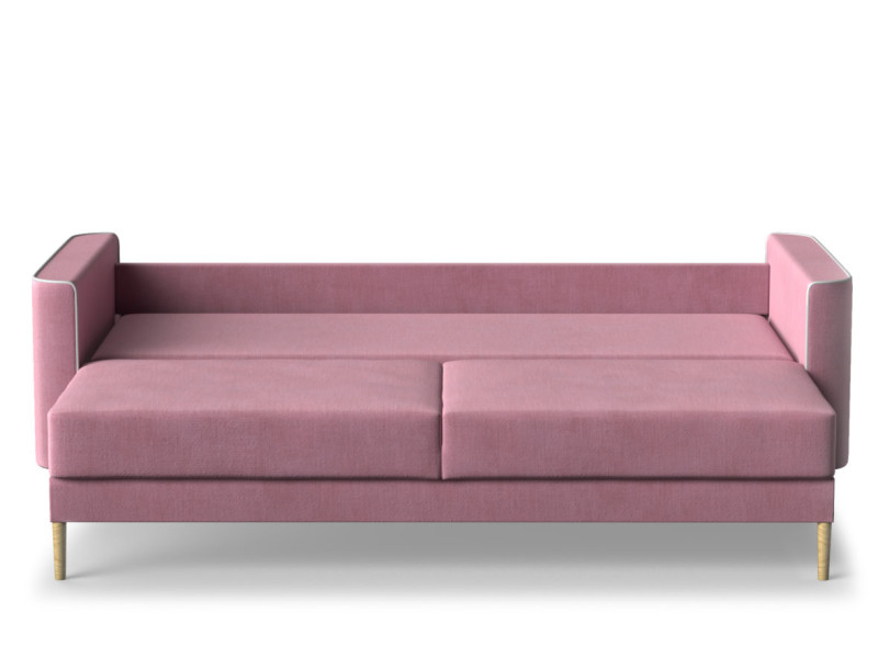 Диван легко трансформируется в комфортную кровать для ежедневного сна. Сиденье сдвигается вперед, а на его место кладется спинка дивана. Для хранения постельного белья предусмотрен небольшой короб, расположенный под сиденьем.