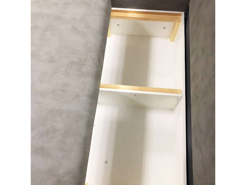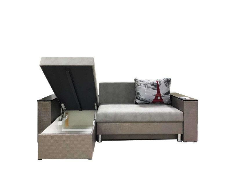 Угловой диван Атлант имеет два больших короба для белья под сидением, а также дополнительные ниши в подлокотниках.
