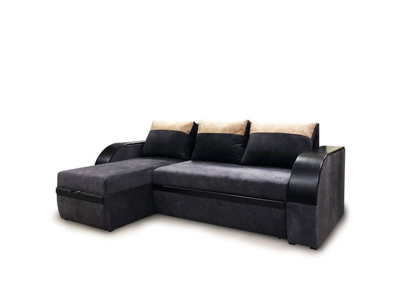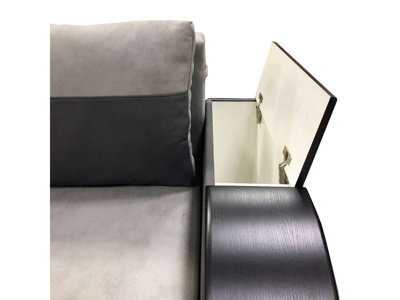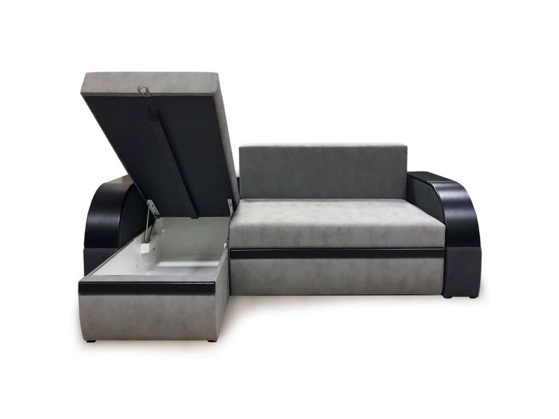 Угловой диван Бентли имеет два больших короба для белья под сидением. Декоративные подлокотники с изогнутыми накладками МДФ также вмещают в себе дополнительные ниши для белья.