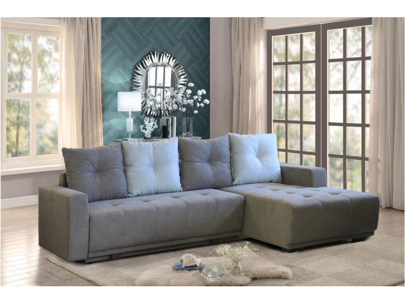 Изготовлен из надежных материалов, этот угловой диван является долговечным и егрономичним. Втяжки на сиденье визуально расширяют его площадь и добавляют эстетической мягкости.