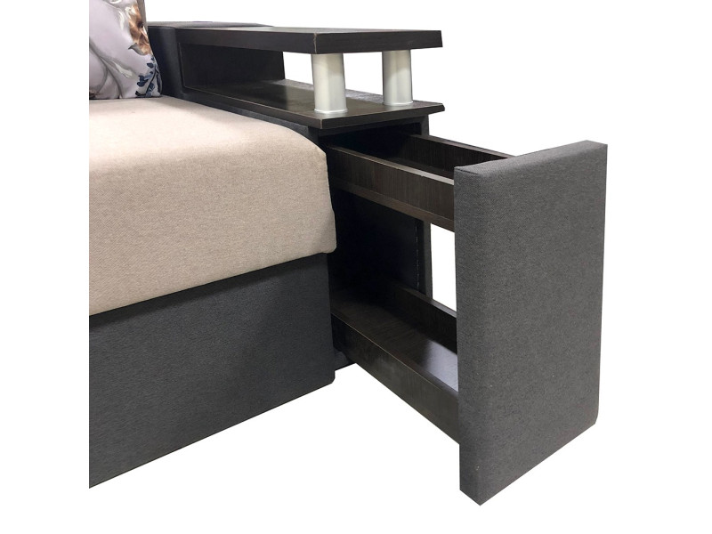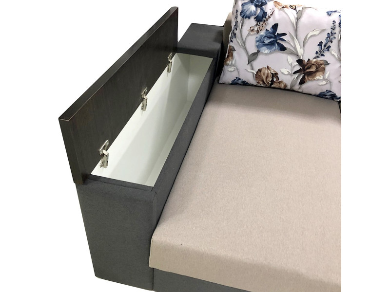 B конструкции дивана предусмотрены два вместительных короба для белья, а также дополнительная ниша в одном из подлокотников.