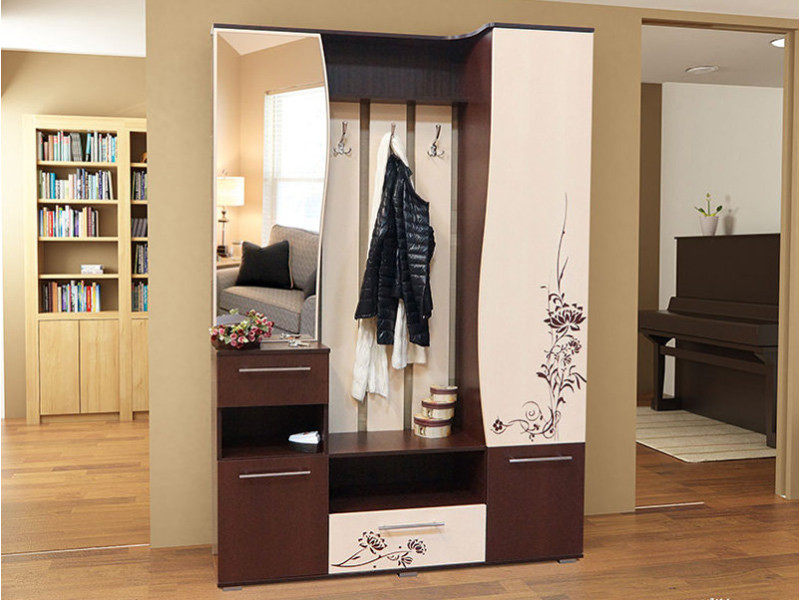 Прихожая ЭВИТА СВІТ МЕБЛІВ – практичный комплект в прихожую Evita Svit Mebliv от фабрики «Мир мебели – Украина». Изготавливается в цвете: корпус – венге темный, фасад – венге светлый / венге темный. Состоит из однодверной тумбы с нишей и выдвижным ящиком, большого зеркала, однодверной тумбы для обуви с открытым отделением, панели с крючками и полкой для головных уборов и платяного шкафа. Размеры: шир./выс./гл. – 140/207/35,5 см. Прихожая Евіта Свит Меблив характеризуется современным стильным дизайном, декорированными фасадами и функциональной конструкцией. Продается комплектом.