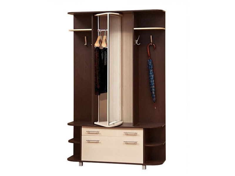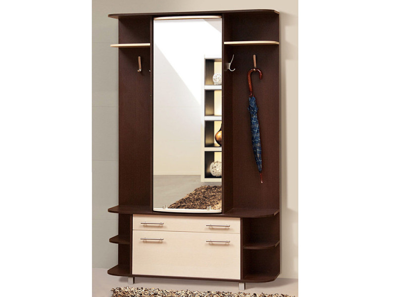 Прихожая ПРИМА СВІТ МЕБЛІВ – практичный комплект в прихожую Prima Svit Mebliv от фабрики «Мир мебели – Украина». Изготавливается в двух цветовых решениях: венге светлый / венге темный и дуб сонома / белый. Состоит из платяного шкафа с зеркалом на фасаде и однодверной тумбы для обуви с выдвижным ящиком по центру. По бокам расположены открытые отделения с крючками для одежды и полками. Размеры: шир./выс./гл. – 135/211/40,5 см. Прихожая Пріма Свит Меблив характеризуется оригинальным дизайном с зеркальной поворотной дверью, визуально расширяющей пространство. Продается комплектом.