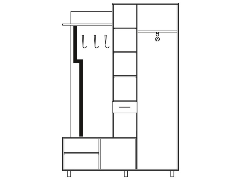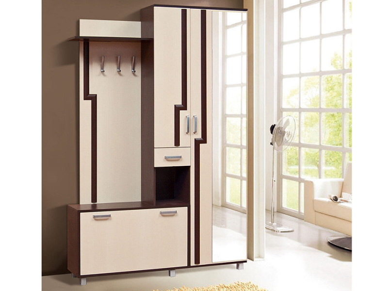 Прихожая РЕПРИЗА СВІТ МЕБЛІВ – практичный комплект в прихожую Repriza Svit Mebliv от фабрики «Мир мебели – Украина». Изготавливается в двух цветовых решениях: венге светлый / венге темный и дуб сонома / белый. Состоит из однодверного платяного шкафа с зеркалом на фасаде, небольшого однодверного пенала с выдвижным ящиком и нишей, однодверной тумбы для обуви, панели с тремя крючками и полкой для головных уборов. Размеры: шир./выс./гл. – 140/209/37,5 см. Прихожая Реприза Свит Меблив характеризуется оригинальным дизайном с декоративными контрастными линиями, модным цветовым сочетанием и удобными продолговатыми ручками. Продается комплектом.