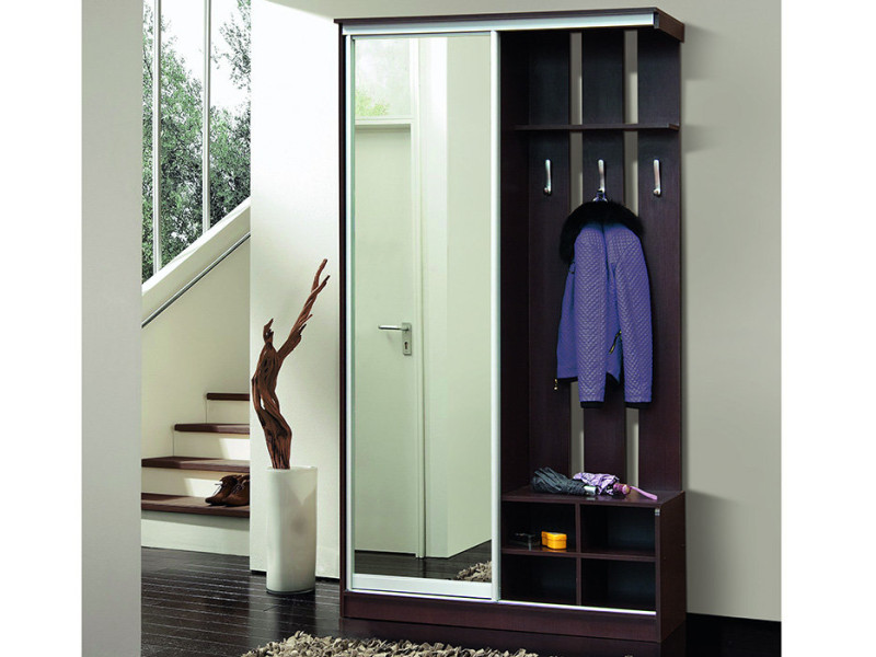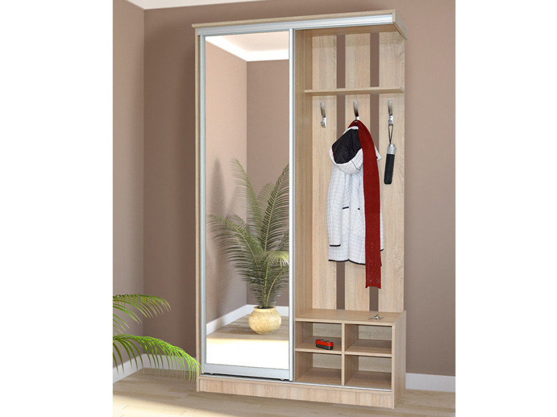 Прихожая ВИЗИТ СВІТ МЕБЛІВ – практичный комплект в прихожую Vizit Svit Mebliv от фабрики «Мир мебели – Украина». Изготавливается в двух цветовых решениях: дуб сонома и венге темный. Состоит из платяного шкафа с зеркалом на фасаде раздвижной двери, тумбы для обуви с четырьмя открытыми отделениями и панели с тремя крючками и полкой для головных уборов. Размеры: шир./выс./гл. – 120/221,5/54,5 см. Прихожая Візит Свит Меблив характеризуется лаконичным дизайном с минимумом декора и раздвижной системой дверей в серебристом профиле. Зеркало в полный рост визуально расширит помещение, сделав его светлее и просторнее. Продается комплектом.