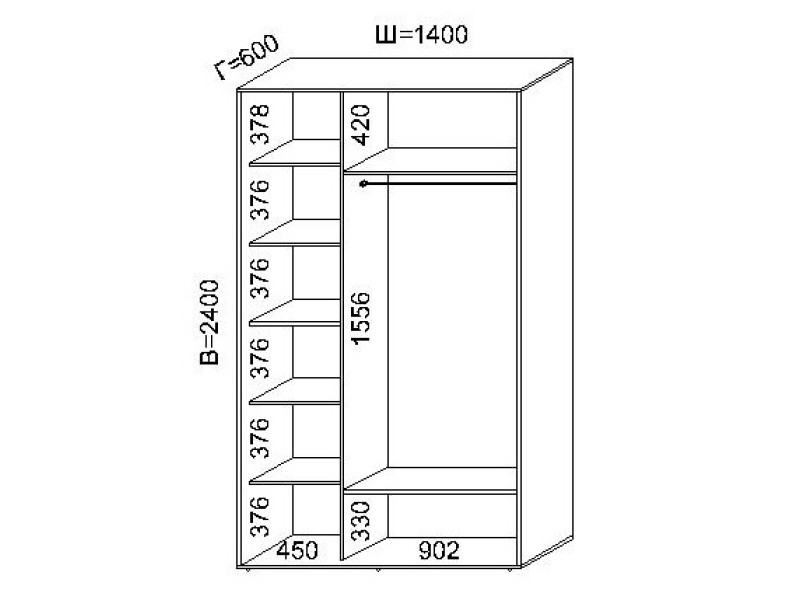 В базовую цену шкафа входит: раздвижная система эконом (Alustar); цвет раздвижной системы- серебро; корпус и наполнение дверей ламинированная ДСП 16мм; задняя стенка -ДВП белое.