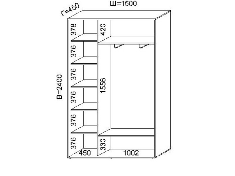 В базовую цену шкафа входит: раздвижная система эконом (Alustar); цвет раздвижной системы- серебро; корпус и наполнение дверей ламинированная ДСП 16мм; задняя стенка -ДВП белое.