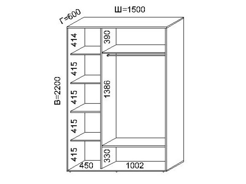 В базовую цену шкафа входит: раздвижная система эконом (Alustar); цвет раздвижной системы- серебро; корпус и наполнение дверей ламинированная ДСП 16мм; задняя стенка -ДВП белое.