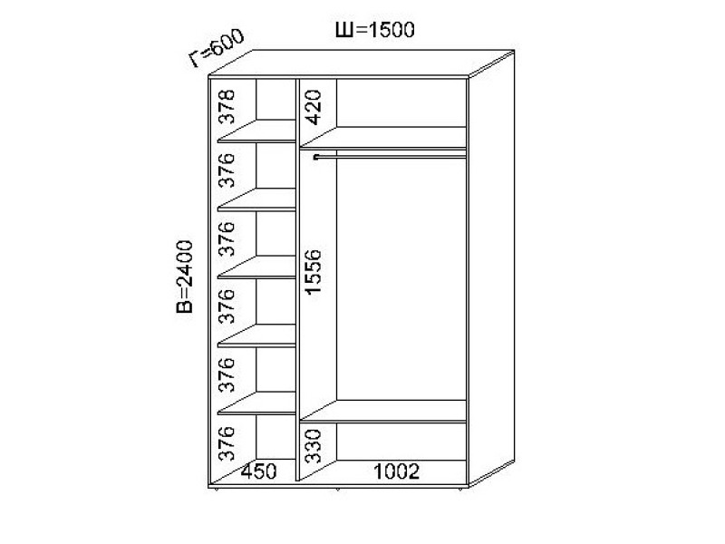 В базовую цену шкафа входит: раздвижная система эконом (Alustar); цвет раздвижной системы- серебро; корпус и наполнение дверей ламинированная ДСП 16мм; задняя стенка -ДВП белое.