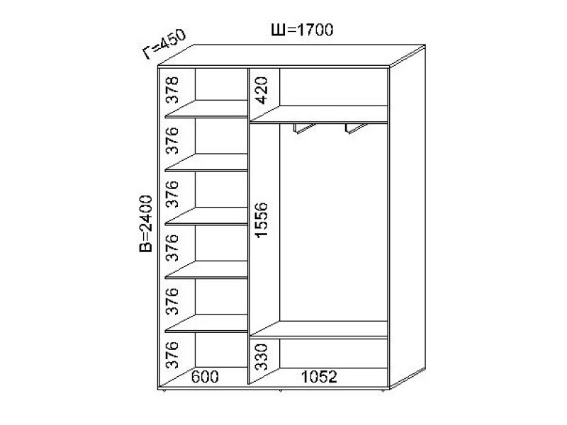 В базовую цену шкафа входит: раздвижная система эконом (Alustar); цвет раздвижной системы- серебро; корпус и наполнение дверей ламинированная ДСП 16мм; задняя стенка -ДВП белое.