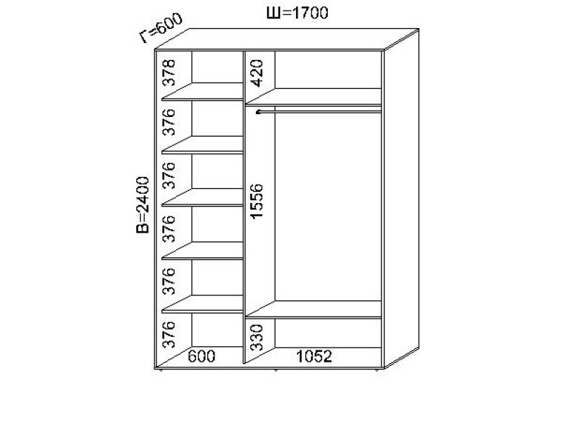 В базовую цену шкафа входит: раздвижная система эконом (Alustar); цвет раздвижной системы- серебро; корпус и наполнение дверей ламинированная ДСП 16мм; задняя стенка -ДВП белое.
