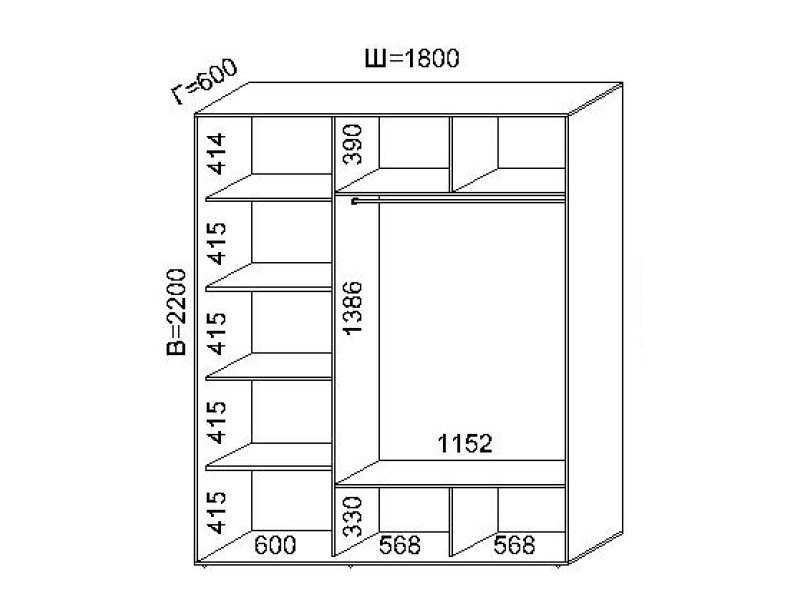Двухдверный шкаф купе (180x60x220)