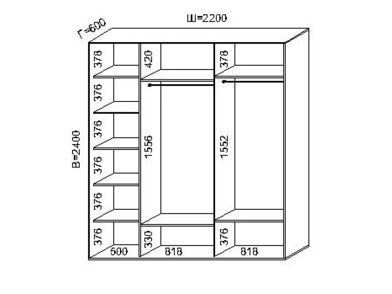 Трехдверный шкаф купе (220x60x240)