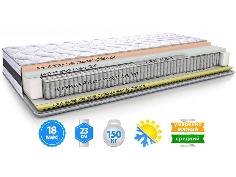 | Материал | Пена Soft, Latexform, Пена памяти, Спанбонд, Термовойлок |