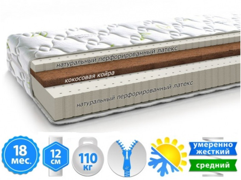 | Материал | Латекс, Кокосовая койра, Шерсть, Хлопок, Микрокомпозит, Спанбонд, Миткаль |