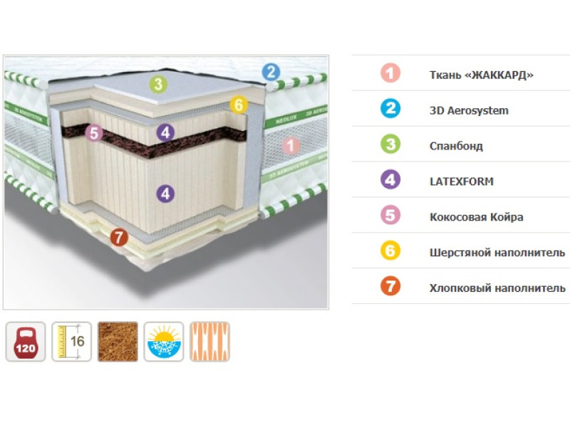 | Материал | Latexform, Кокосовая койра, Шерсть, Хлопок, Спанбонд |