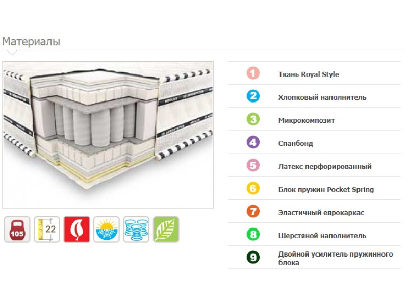 3. Микрокомпозит - это материал, формирующий дополнительный теплоизоляционный слой в матрасе. Обладает низкой теплопроводностью и малой гигроскопичностью, благодаря чему способен удерживать тепло и поддерживать оптимальный температурный режим.
