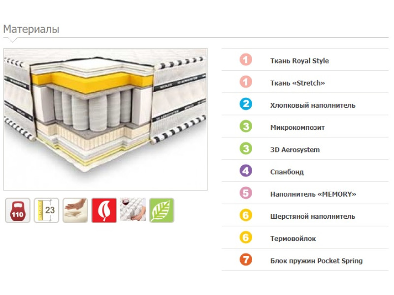 | Материал | Пенополиуретан, Пена памяти, Шерсть, Хлопок, Спанбонд, Термовойлок |