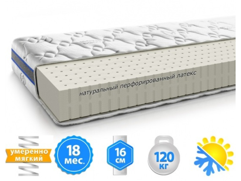 Латекс - натуральный материал, получаемый из сока каучукового дерева. Обладает ортопедическими и анатомическими свойствами. Придает матрасу мягкость и эластичность. Уникальным качеством латекса является восстановление его первоначальной формы даже после больших и длительных нагрузок, за счет чего обеспечивает максимальный комфорт и релаксацию мышц, является очень долговечным материалом.