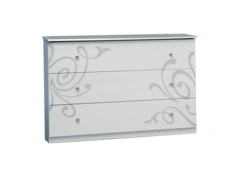 Комод Фелиция новая от производителя Світ Меблів - стильный современный комод украинского производства. Этот комод является функциональной частью модульной спальни Фелиция новая, которая изготовляется в белом или черном цвете. Состоит это изделие из 3 вместительных ящиков для вещей с аккуратными двойными ручками. По периметру фасада комод украшен рисунком в виде абстракции, которая особенно выделяется на черном фоне комода. Комод гармонично будет смотреться только с остальными элементами модульной спальни Фелиция новая. Производится этот комод из качественной ДСП с фасадом МДФ. Ящики комода выдвижные, на качественной роликовой основе. Выдвигаются легко, пользоваться комодом Вам будет очень удобно. Если Вы желаете купить комод Фелиция новая, обращайтесь в интернет-магазин Престиж мебель.